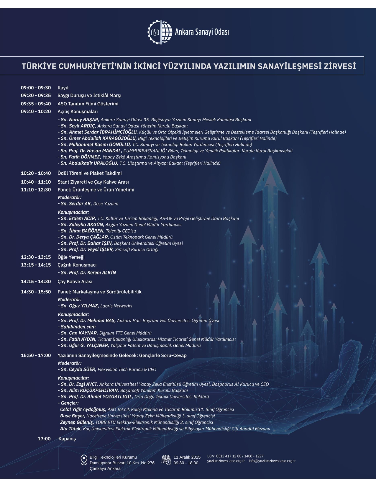 The announcement text from the Ankara Chamber of Industry regarding the "Software Industrialization Summit in the Second Century of the Republic of Turkey" is given below.