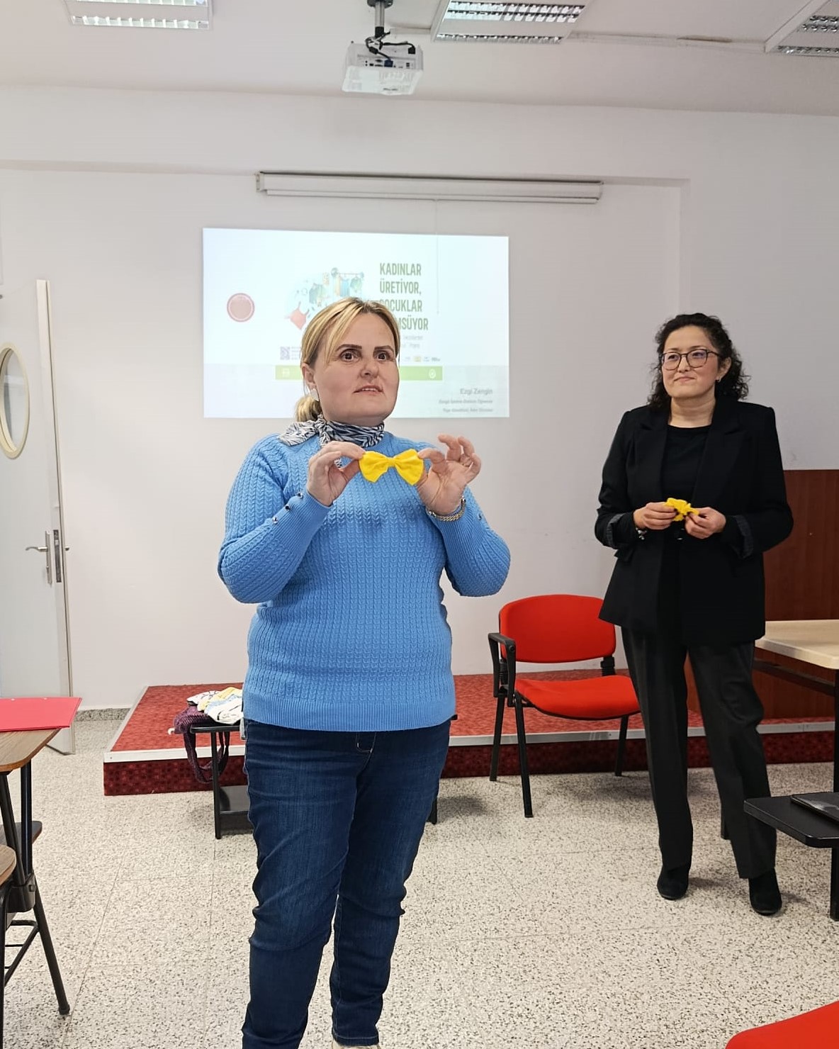 On Wednesday, December 3, 2025 at 13:30, Eskişehir Osmangazi University Business Administration PhD Student Ms. Ezgi ZENGİN and Sewing Instructor Ms. Müberra ELBEK gave a project presentation titled "Impact of Waste Textiles on Social Benefit, Benefits of Waste Management, Benefits of Recycling of Textile Waste, Social Benefits of Recycling" within the scope of the From Waste Textiles to Social Benefit Project Presentation in our school's Seminar Hall. After the project presentation, the students of Eskişehir Vocational School contributed to the "Women Produce, Children Smile" campaign by preparing colorful hairpins for children within the scope of "Recycling of Waste Textiles". Our Principal of Eskişehir Vocational School Ms. Hilal DEMİR KIVRAK thanked the valuable instructors for the project introduction and expressed her satisfaction with their contributions.